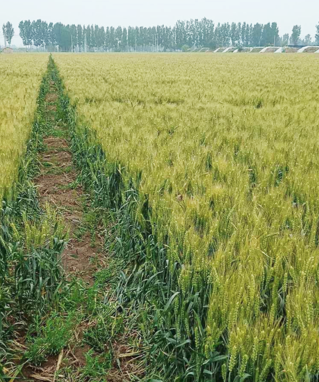 示范田位于天津?qū)氎娣郊仪f鎮(zhèn)駱家村,面積300畝。是2018-2019小麥種植季在天津地區(qū)5萬(wàn)多畝雜交小麥中普通的1塊。