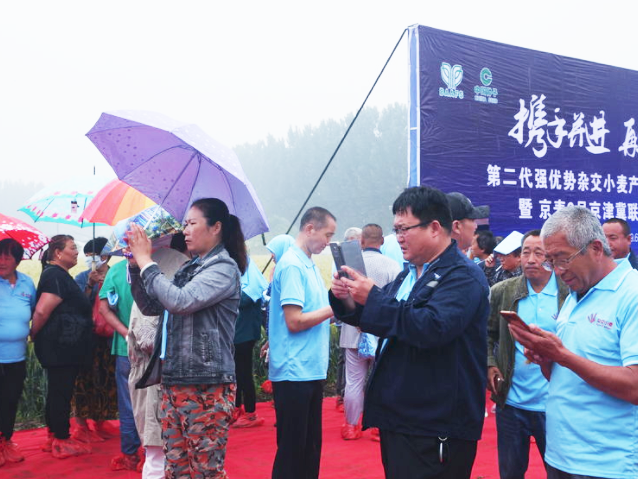 200多位一線人員同來(lái)見(jiàn)證。為雜交小麥點(diǎn)贊。舉起大拇指。雜交小麥就是好!雜交小麥就是棒!