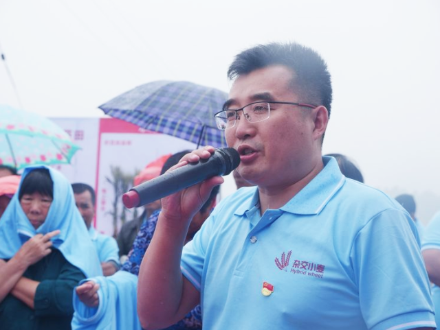 公司總經(jīng)理陳兆波在會(huì)場(chǎng)介紹雜交小麥在京津冀產(chǎn)業(yè)化推廣情況和環(huán)渤海濱海鹽堿地的大面積示范情況。