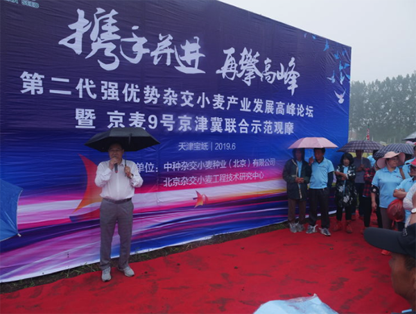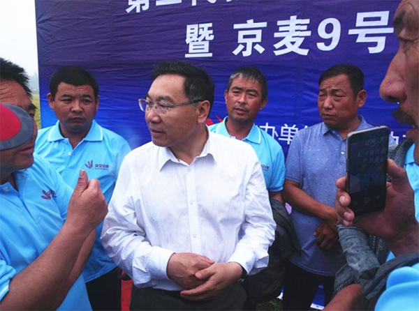 去年6月8日,強(qiáng)優(yōu)勢(shì)雜交小麥京麥9號(hào)品種發(fā)布會(huì)在河北廊坊隆重召開(kāi),4位院士參與了品種發(fā)布和產(chǎn)業(yè)化論壇。在會(huì)議上,中種雜交小麥公司總經(jīng)理陳兆波向全國(guó)喊出了“雜交小麥不再是傳說(shuō)“的口號(hào)。一年過(guò)去,又到小麥成熟的季節(jié)。在高考的前一天,京津冀200多名種植大戶(hù)和經(jīng)銷(xiāo)商在天津?qū)氎妫煌?jiàn)證京麥9號(hào)交上的滿(mǎn)分答卷。